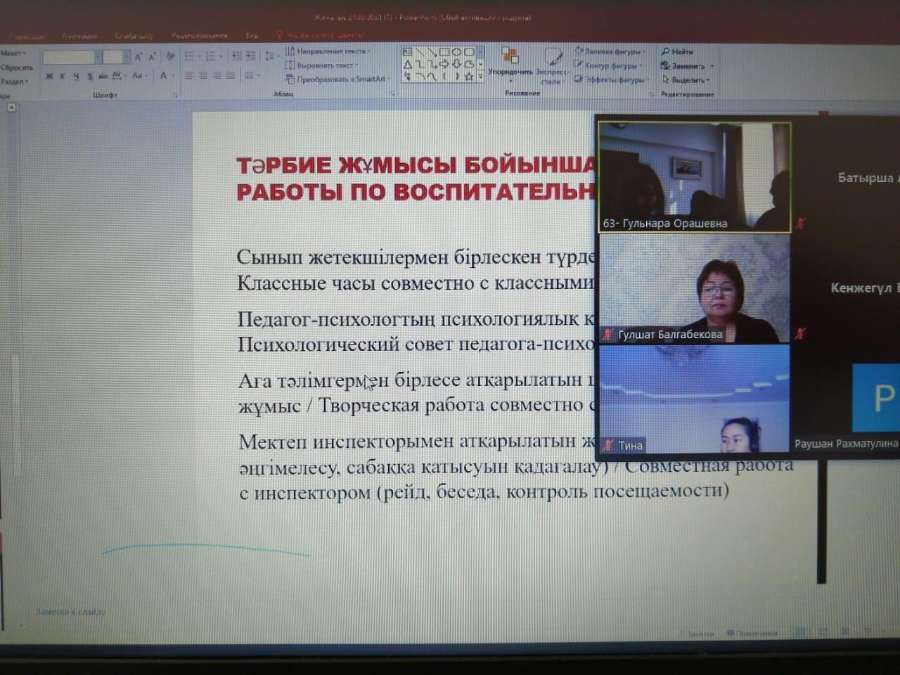 27.02.2021жылы Мектеп директорының және ата-аналар қатысуымен "Директорлық сенбілік-ата-ана дауысы" атты онлайн жиналыс болып өтті. Жиналыста мектеп әкімшілігі мен қатар мектеп инспекторы да қатысты. Қазіргі елімізде болып жатқан карантин мәселесі бойынша ата-аналар арасында онлайн жиналыстар өткізілуіне байланысты көптеген мәселелер талқыланған болатын. Ата-аналар өздерінің толғандырып жүрген сұрақтарына жауап алды.