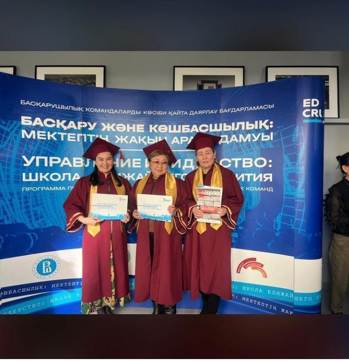 Мектеп басшысы Актымбаева Гулнара Орашевна мен оқу ісінің меңгерушісі Джурумбаева Жанат Рахымжановна, география пәнінің мұғалімі Бахырханова Гаухар Мырзабековна"Басқару және көшбасшылық: жақын арадағы даму мектебі» атты курсты сәтті аяқтап шықты. Құттықтаймыз