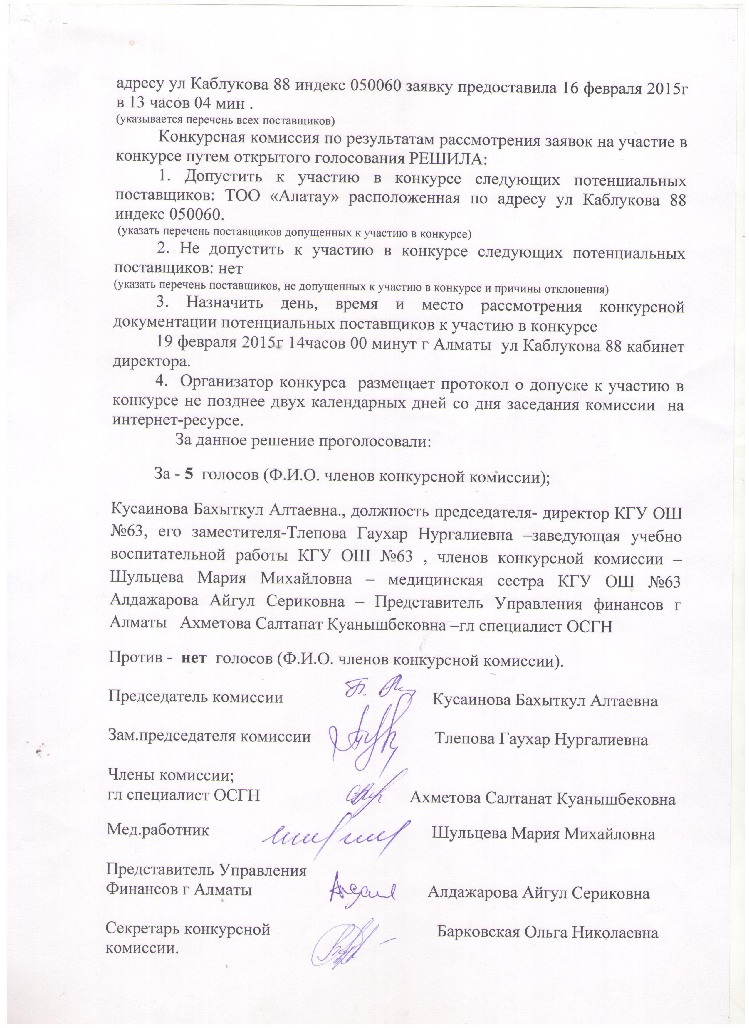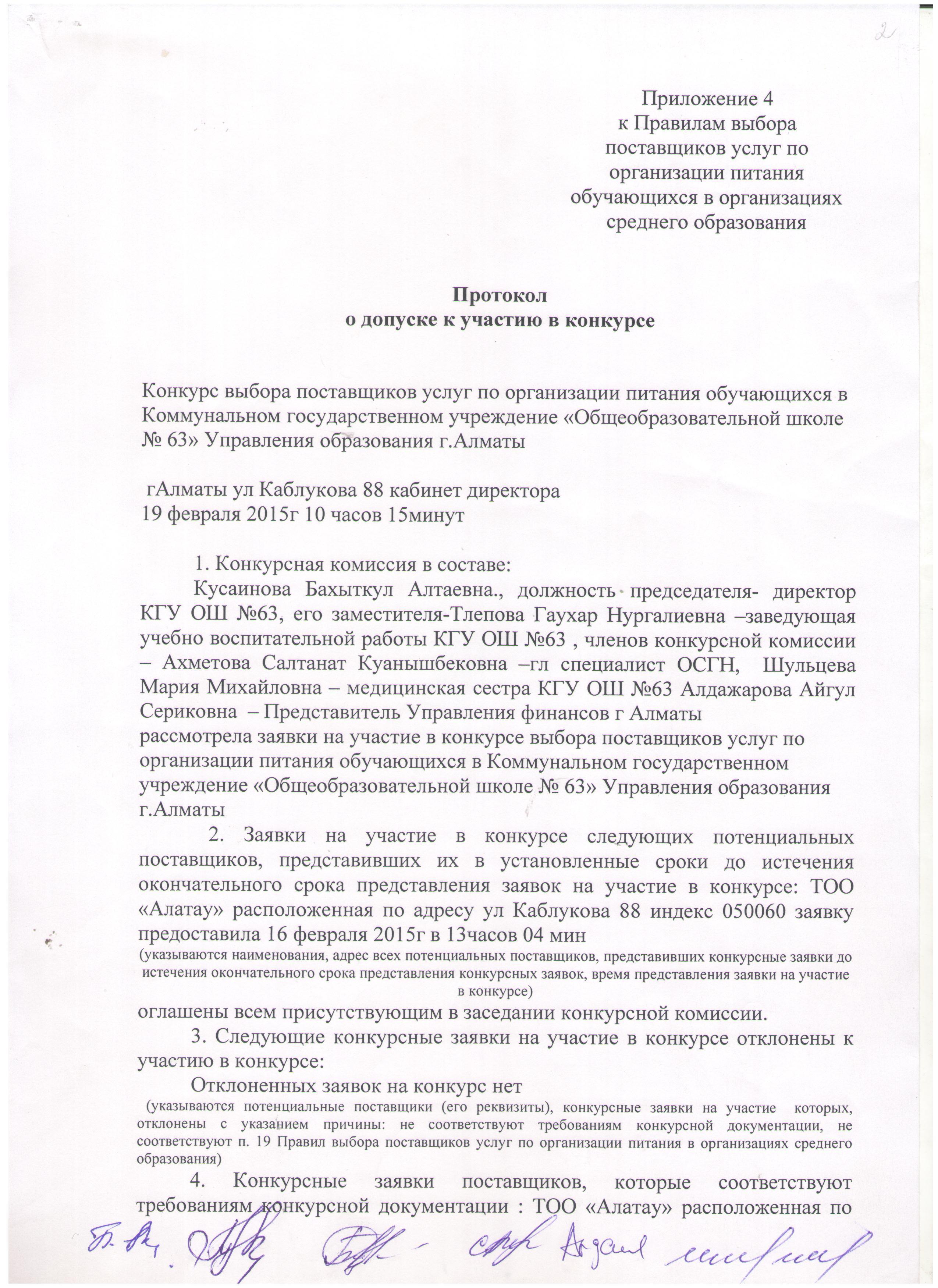 » Протокол допуска