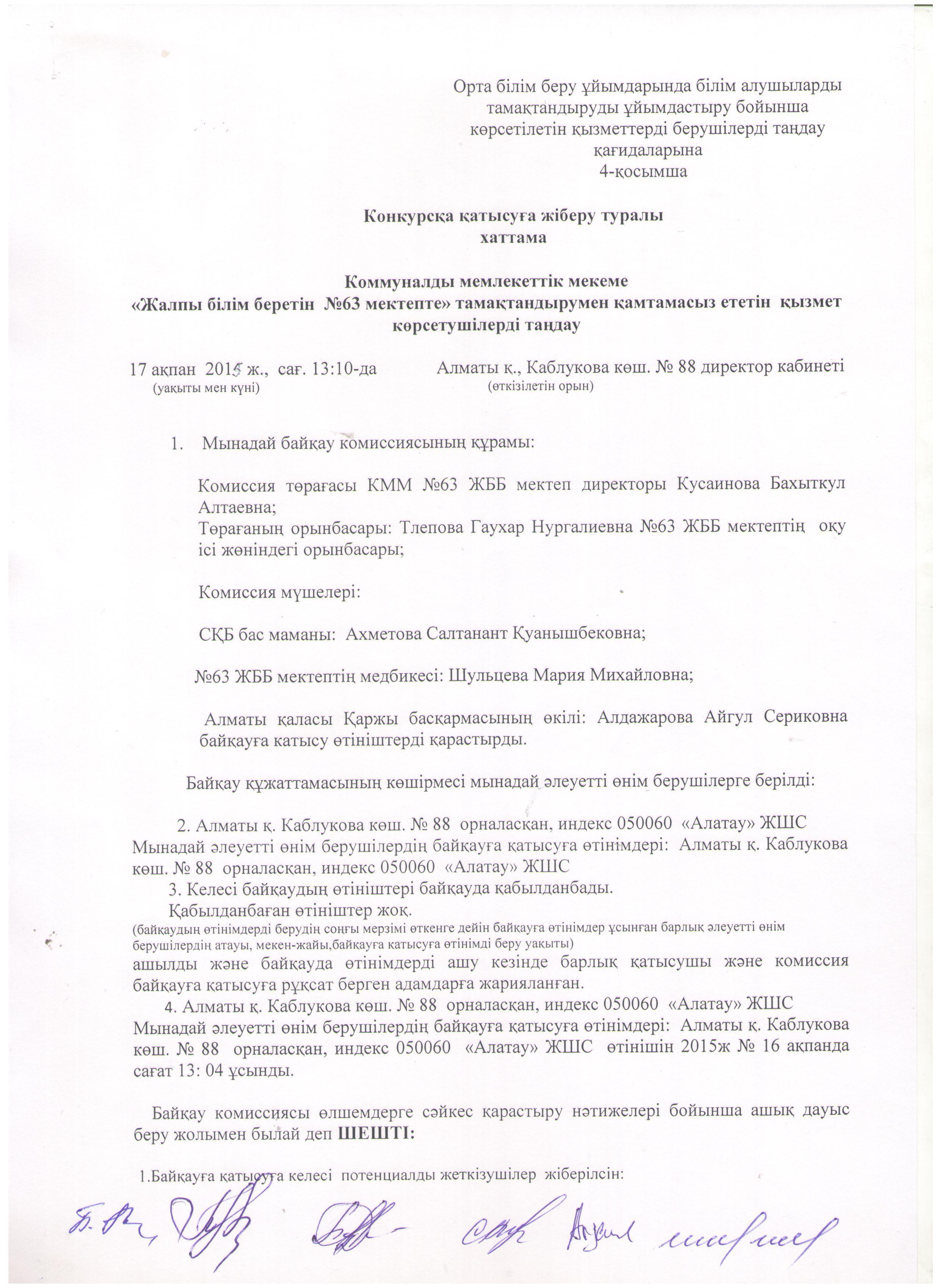 » Конкурсқа жіберу туралы хаттама